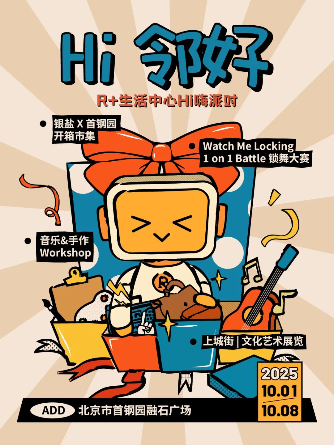 这是首钢园开放、自生长、持续编码的新社区系统首次试运行——8天的「Hi嗨派对」活动,通过市集、展览、赛事、Workshop…...将R+室内外多个空间真正面向大众敞开!只要你在场,就是R+社区的一部分。
