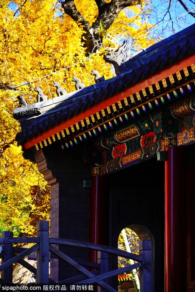 那些沉静的碑石、石雕就像沐浴在金色时光里,有一种静谧与庄重的美,传递出历史与时间的低声共鸣,在这里,赏古建、赏石刻、赏银杏,把最厚重而独特的古都北京的秋天收入囊中。