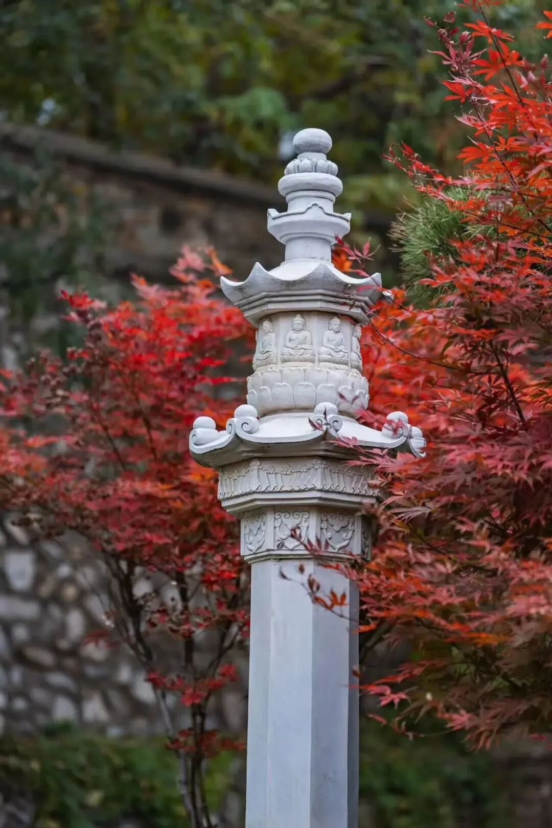 万余株彩叶树被种植于道路两边的山野之中,沿寺庙步步登高赏红叶,品味秋日“滤镜”下的建筑之美,让心灵得到安慰。