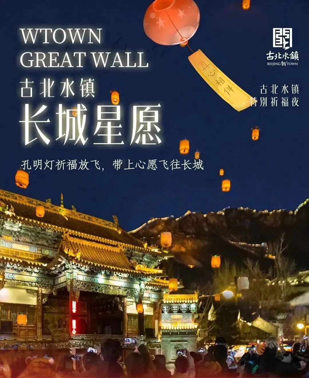 10月25日、26日、29日、31日,古北水镇特别祈福夜,在卡片上写下你的祈愿,让无人机孔明灯,带上祝愿飞往长城。