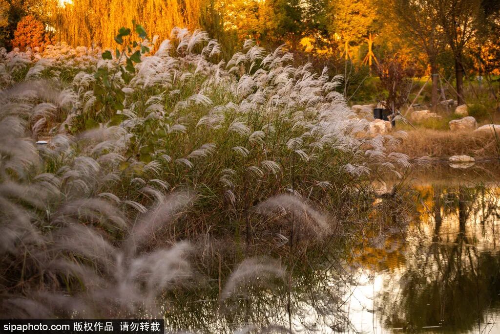 北京园博园的芦苇荡近日迎来最佳观赏期,成片的芦苇在秋风中摇曳,将湿地晕染成一片温暖的金色海洋,湿地芦苇随风起、依水摇曳着,展示出秋日极致的静谧美好。