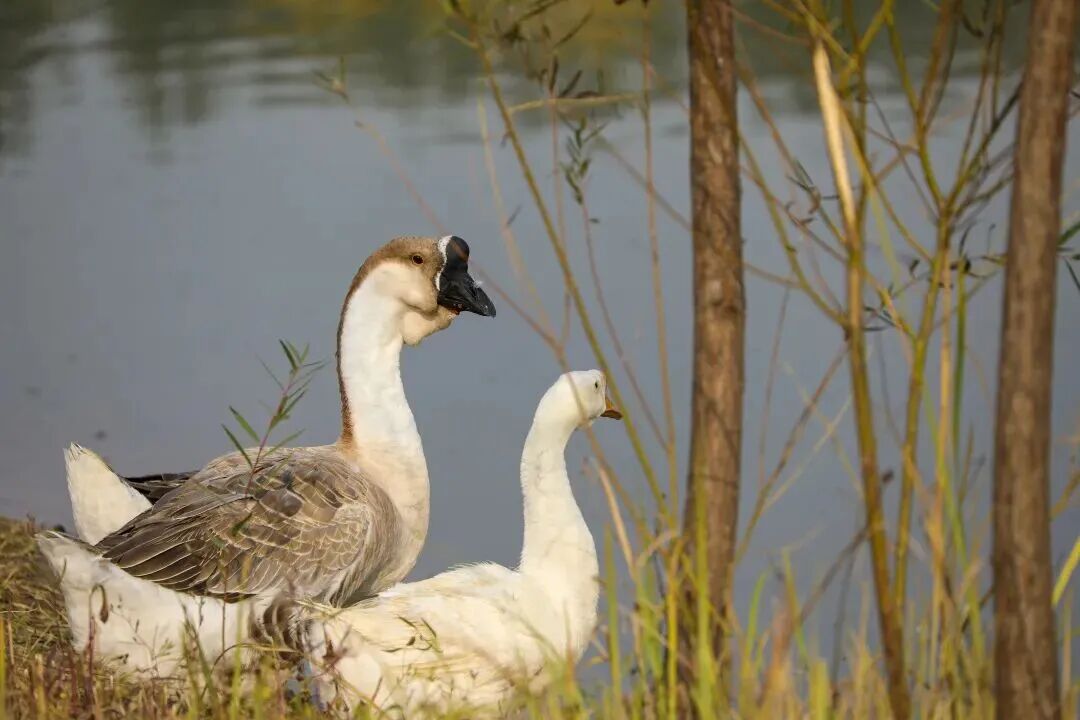 一池碧蓝的湖水,水边金黄色的芦苇草随风轻轻摇曳,馋嘴的小鸭难以抗拒游人投下的美食诱惑,飞速地冲过来一口吞下,一摆尾巴又消失在大家眼前为水面上增添了一圈圈美丽的波纹。