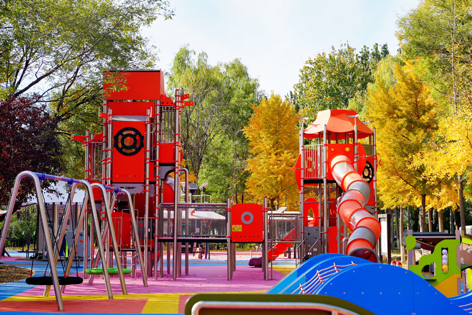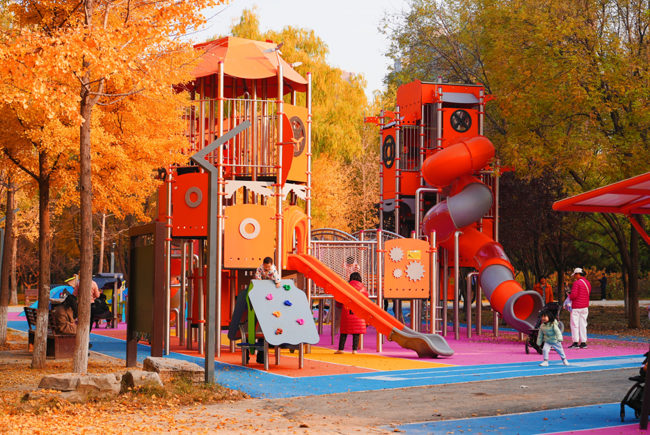 当然八家郊野公园的魅力远不止于美景,5万平方米体育场地,健身区、儿童游乐场地、户外跑道、乒乓球场、羽毛球场……一应俱全。这里最受小朋友们喜爱的,属高六米的全北京最大的免费滑梯。