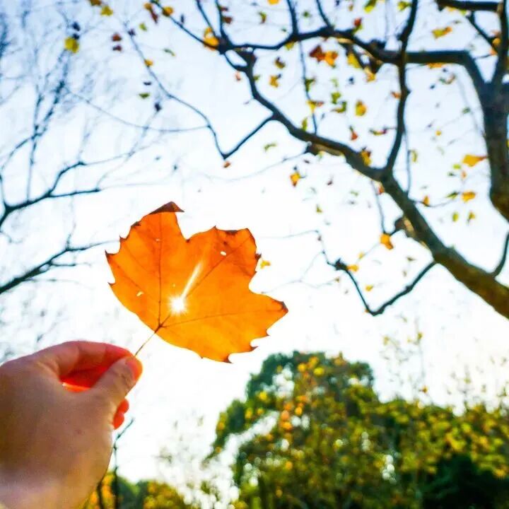 偶尔有落叶从枝头飘落打着旋儿落在肩头像是秋天递来的一封温柔信件。