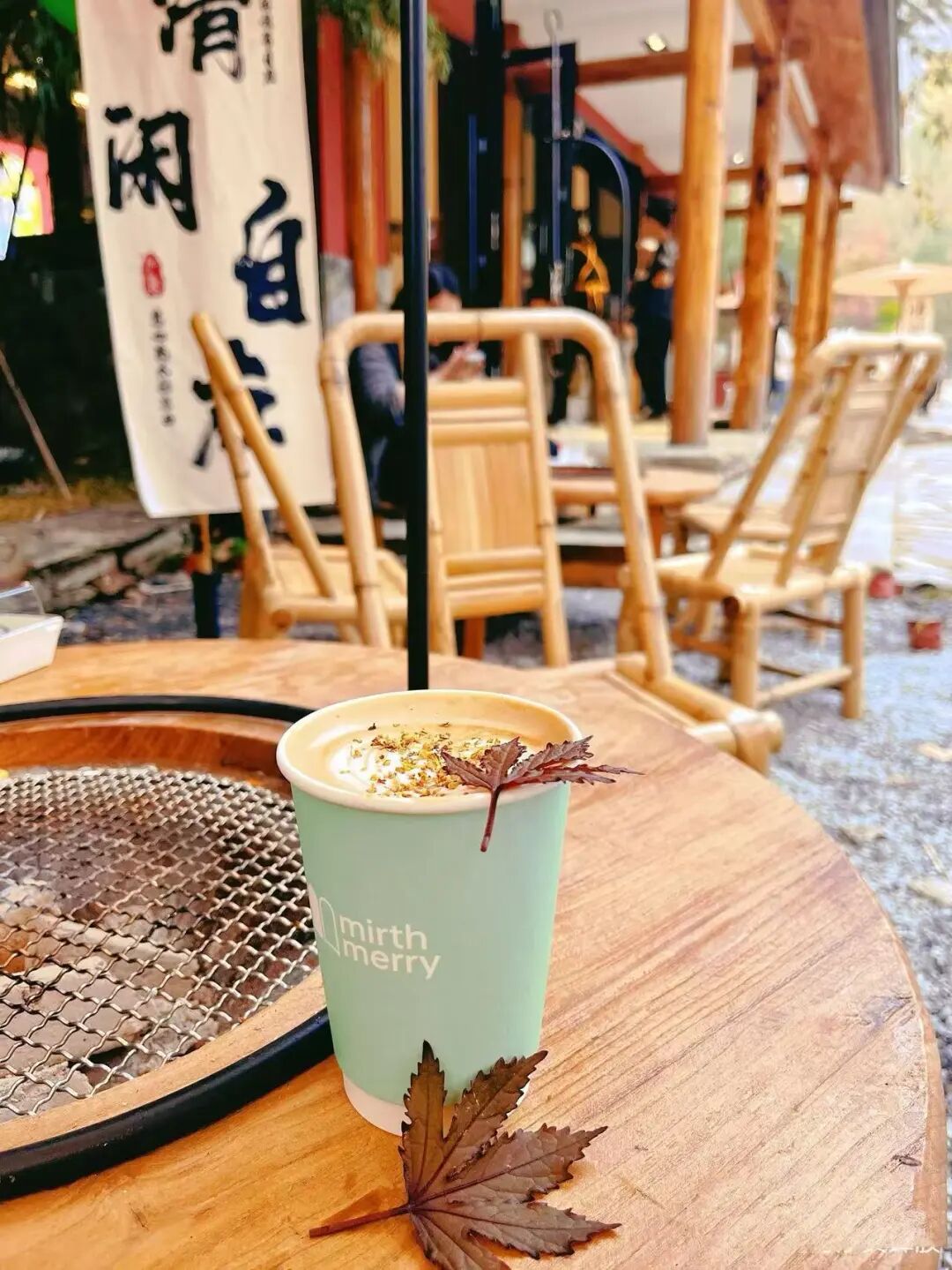 累了就去山间的「咖啡屋」,落地窗外就是漫山红浪,点一杯桂花拿铁,奶油顶撒上晒干的红叶碎,喝一口都是秋天的甜香。