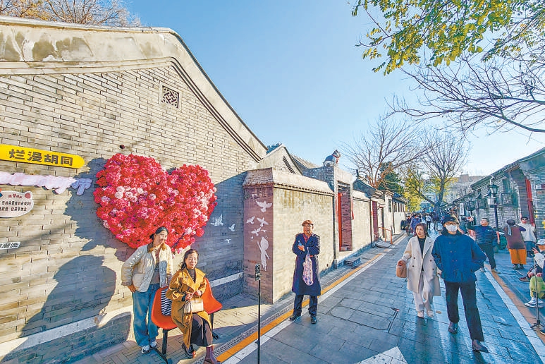 治理后的烂缦胡同变身居民散步、聊天、晒太阳的“城市客厅”,吸引大量游客前来打卡。本报记者 邓伟摄