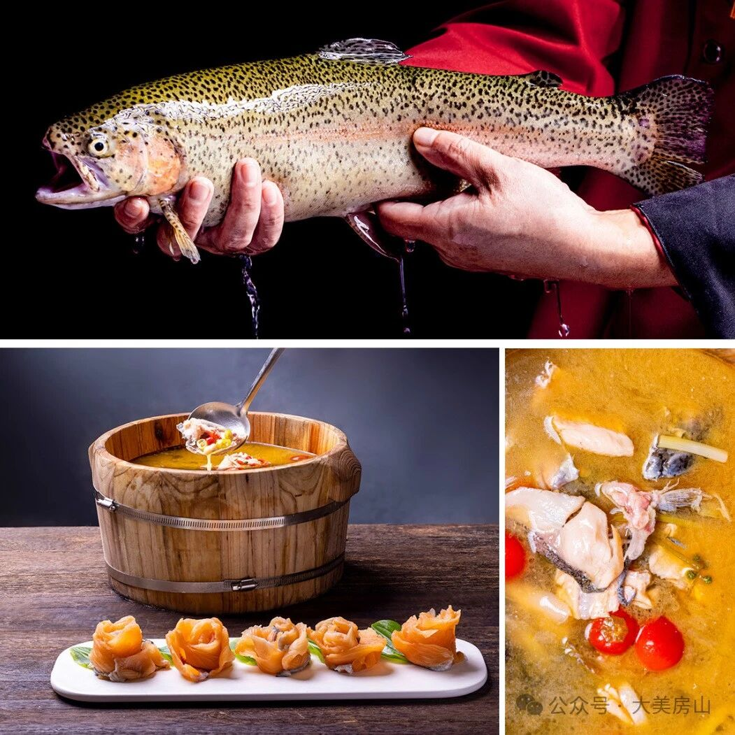 天毓山庄独有的一道特色菜——私汤虹鳟鱼。