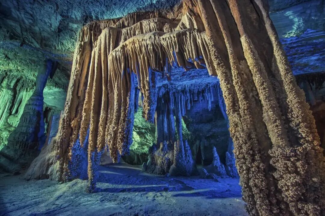 石花形式繁多,异彩纷呈,七层溶洞上下高差150米,每层景观各不相同,美学价值和科研价值居世界洞穴前列。