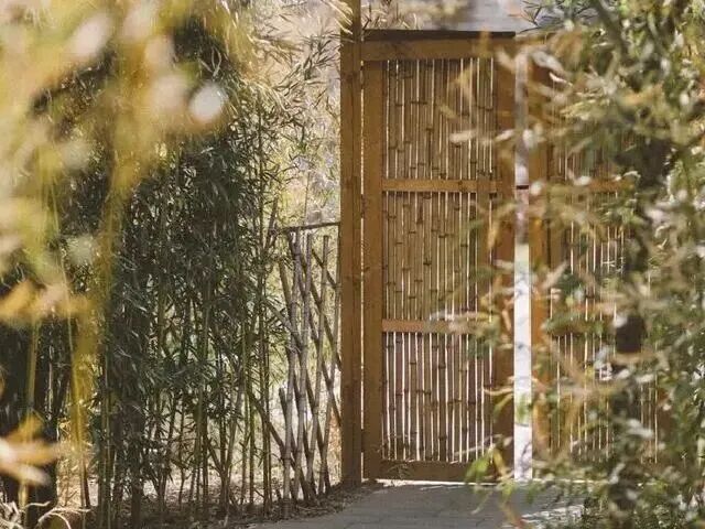 步入庭院,石径蜿蜒引向一方静谧,竹篱疏影间,山色悄然漫入院落。