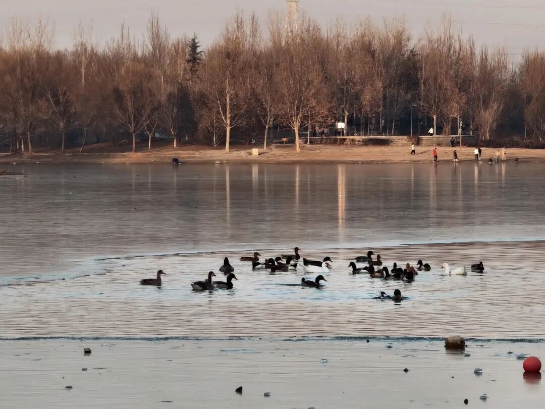 南海子公园的冬天,美丽且静谧,风吹过大片草地和湿地时,仿佛整座公园都慢了半拍,湖面逐渐沉静,倒映着冬日干净的天空,成群的水鸟在浅滩间停留,留下季节更迭的踪迹。