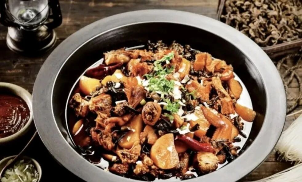 玩累了就去吃一顿热腾腾的铁锅炖吧!大锅端上桌,气氛一下子热闹起来,冬天就该这样豪爽又满足。