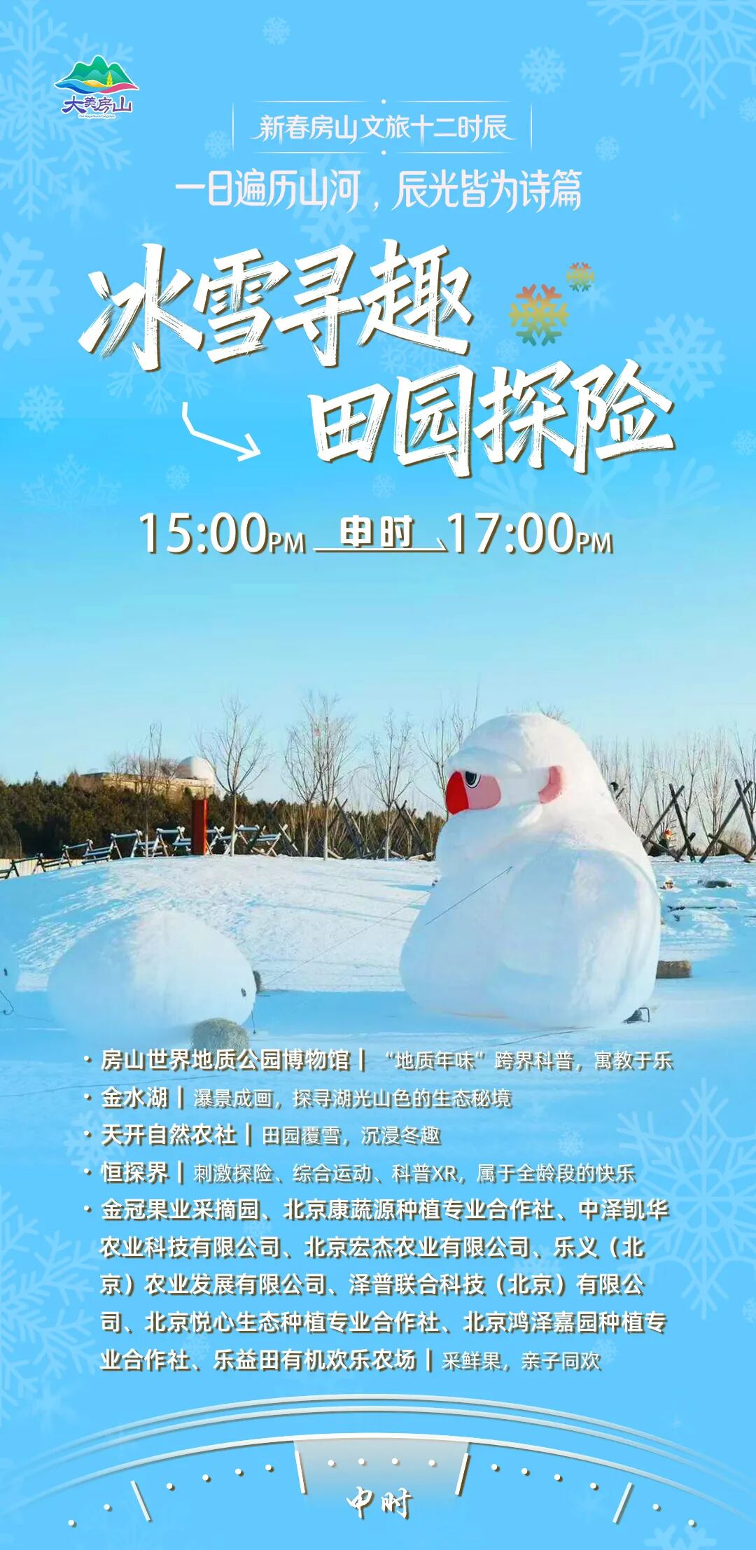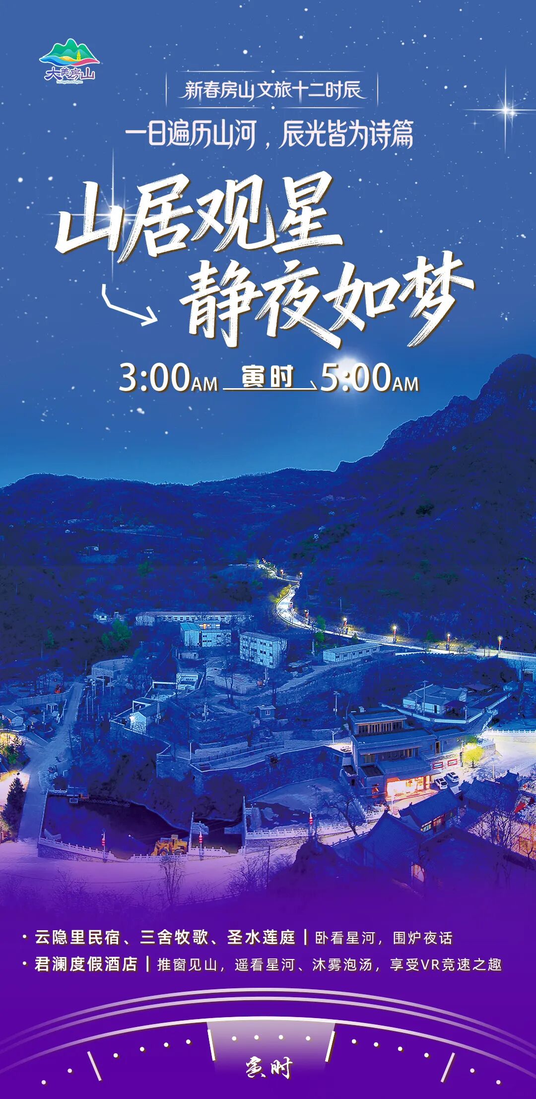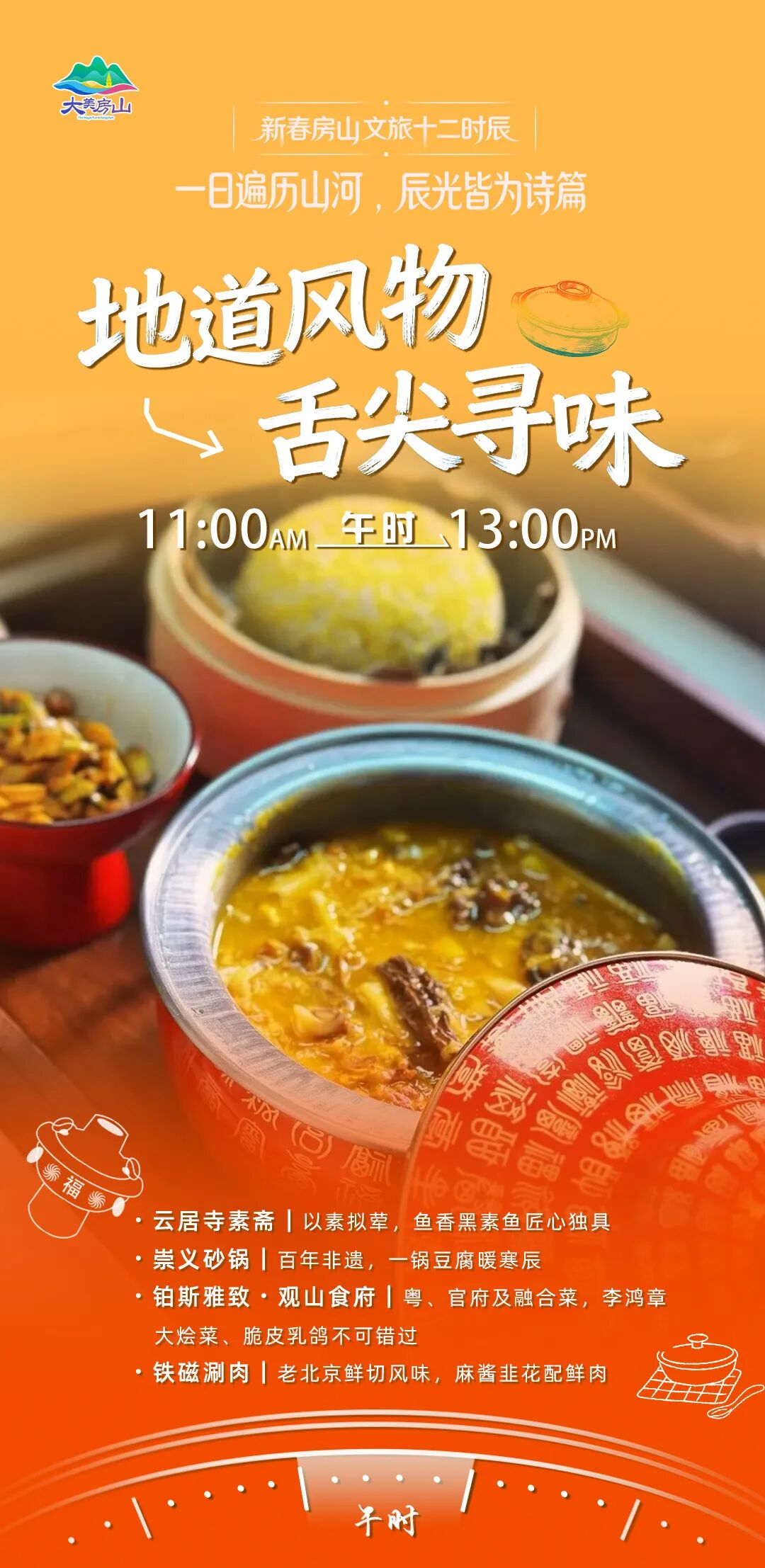 《新春房山文旅十二时辰》打破传统景点单一罗列的模式,以“巳时”至“辰时”十二时段为叙事脉络,为每个时辰精心匹配相应场景与活动,引领游客在时光流转中深度感受房山的文旅韵味。
