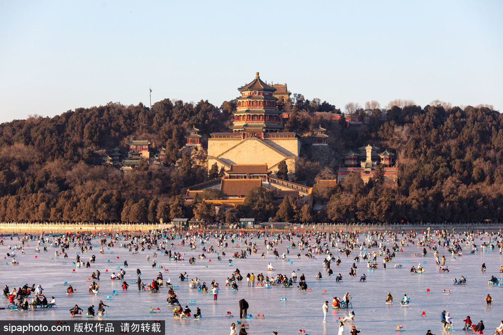 辽阔的天然冰面与万寿山、佛香阁等古典建筑遥相呼应,形成独具韵味的皇家园林冰雪画卷,让游客在滑行嬉戏间,既能感受传统冰上项目的乐趣,亦能领略冬日户外运动的别样生机。