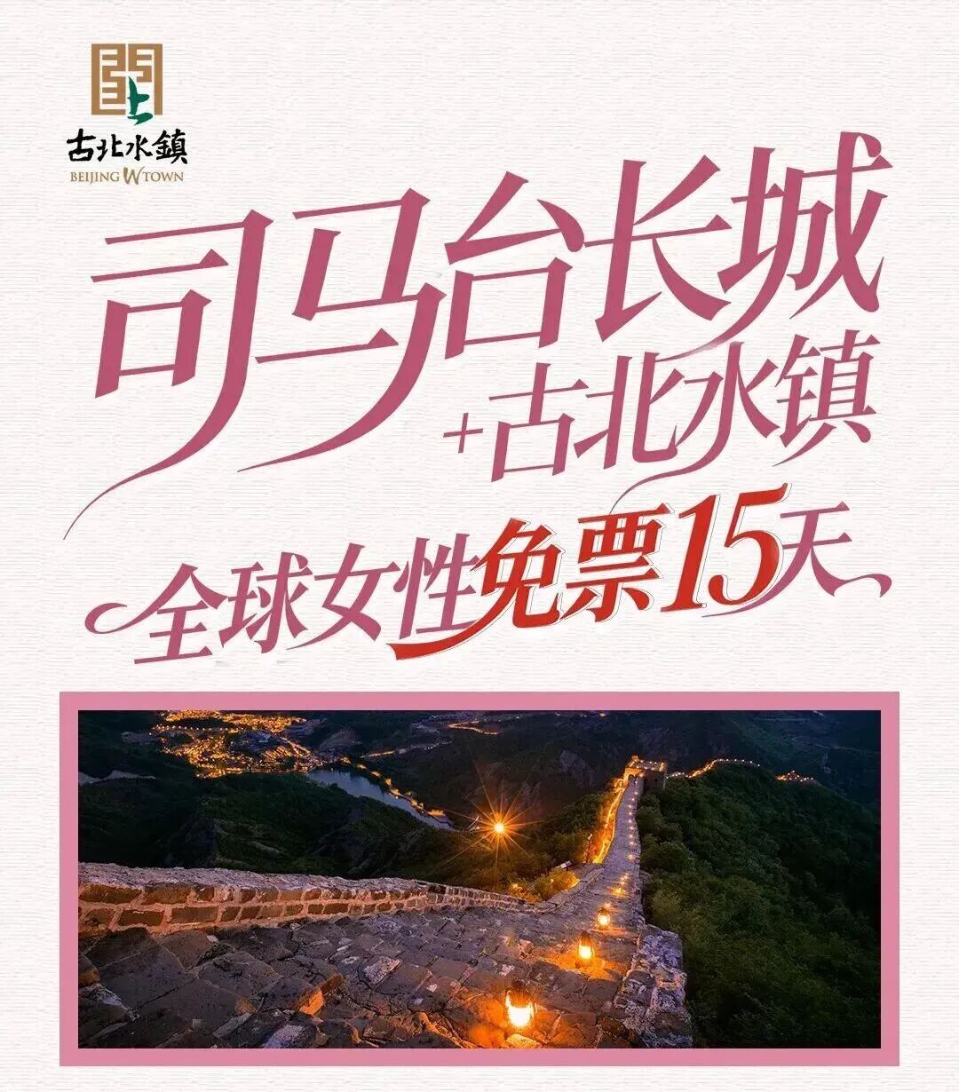 重磅福利来袭:春风送暖,致敬巾帼!2026年3月8日—2026年3月22日,古北水镇(司马台长城)国际旅游度假区特推出免票福利,全球女性可免票畅游司马台长城、古北水镇15天,涵盖两大景区门票,诚邀全球女性共赴长城脚下的春日之约,感受水镇人文与长城雄姿的独特魅力。