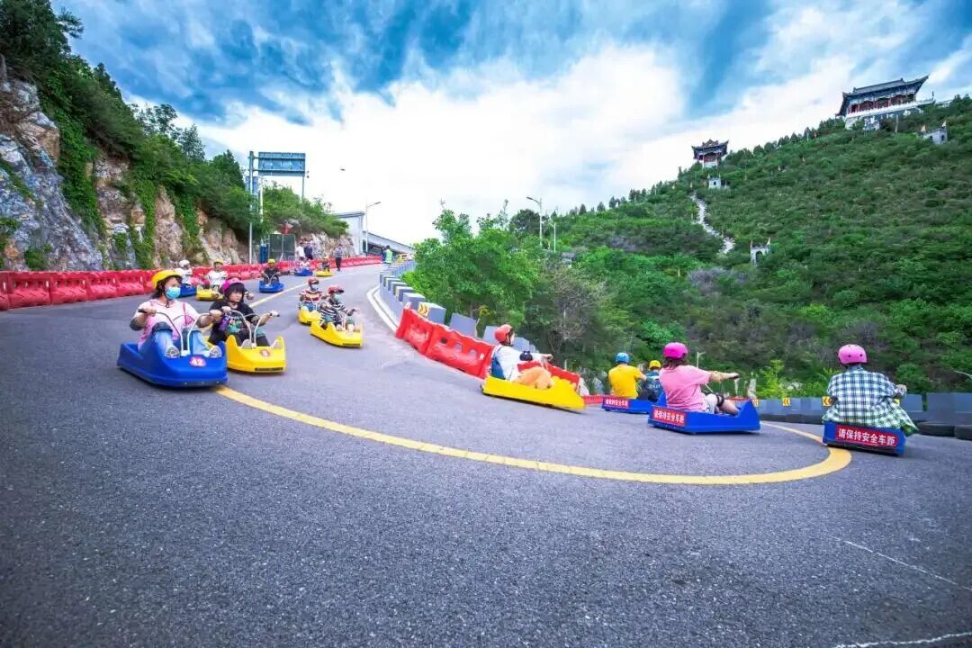 最不能错过的,便是坐山地滑车下山!滑道宛如一条巨龙,蜿蜒盘旋在苍翠山峦间,2公里的滑道,以25公里时速俯冲S弯,既能体验风驰电掣的快感,释放都市压力,也能慢下来欣赏沿途的山间美景,风拂过耳畔,尽是自由与惬意。