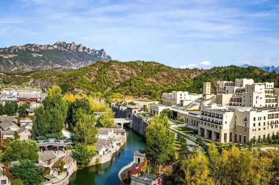 古北水镇国际旅游度假区,坐拥鸳鸯湖水库,背靠中国最美最险的司马台长城,总占地面积9平方公里,距首都机场仅120公里,是长城脚下独具北方风情的度假式小镇。这里青山碧水环绕,43万平方米精美的明清及民国风格山地合院建筑错落有致,仿佛穿越千年,走进一幅北方水乡画卷。