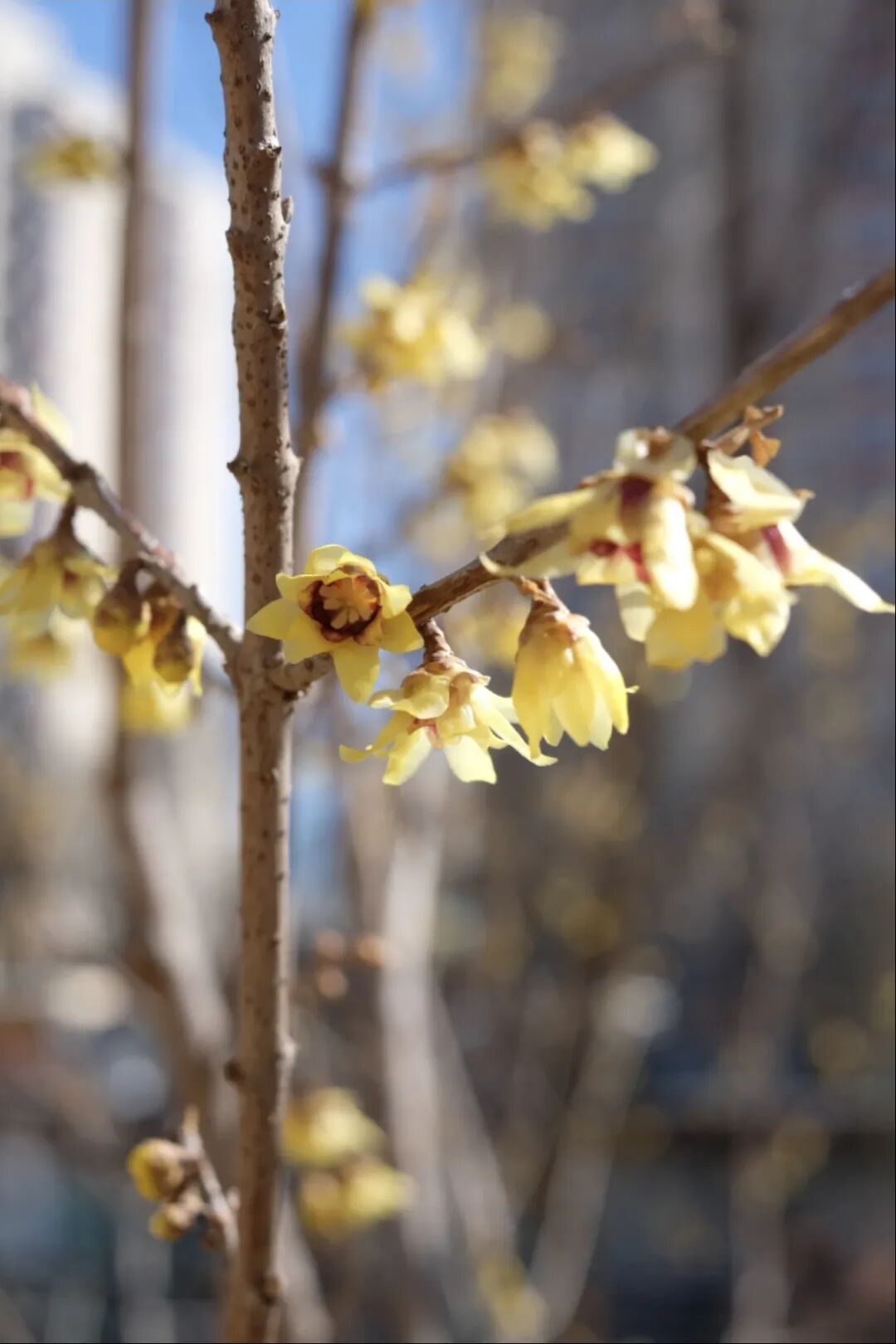 当前,园内花木枝头已探出点点花朵