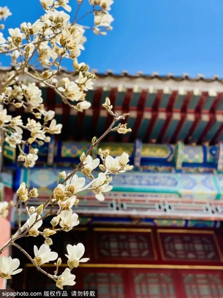 3月中下旬,六百岁的红墙下,白玉兰悄然叩响春的门扉,朱门金瓦映着冰绡般的花瓣,太庙玉兰将迎来最佳观赏期。玉兰花大朵大朵开向天际,白色娴雅、粉紫温暖,在古柏苍翠间泼洒出一幅流动的画卷。