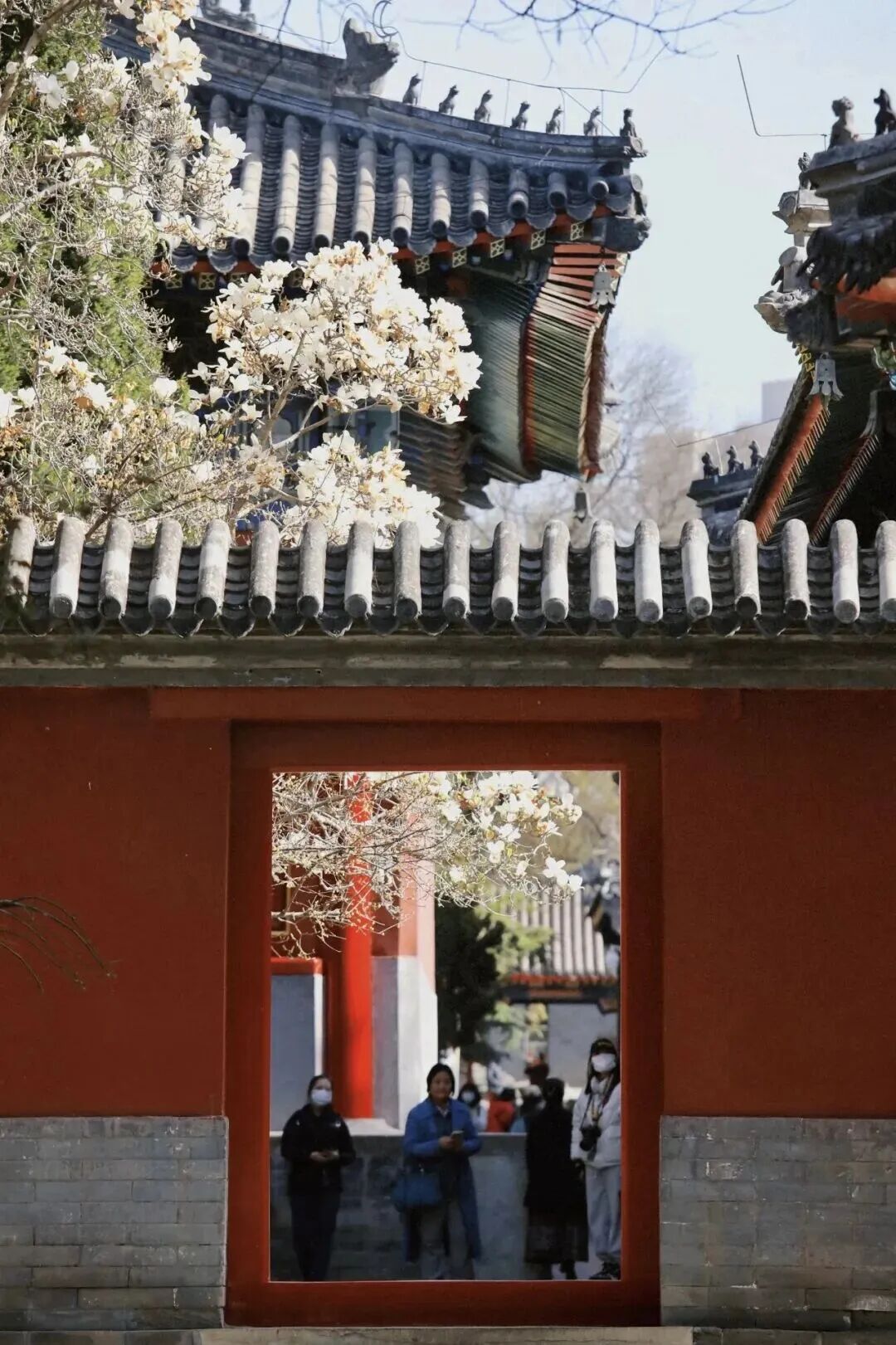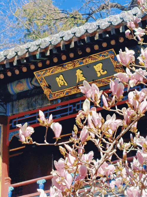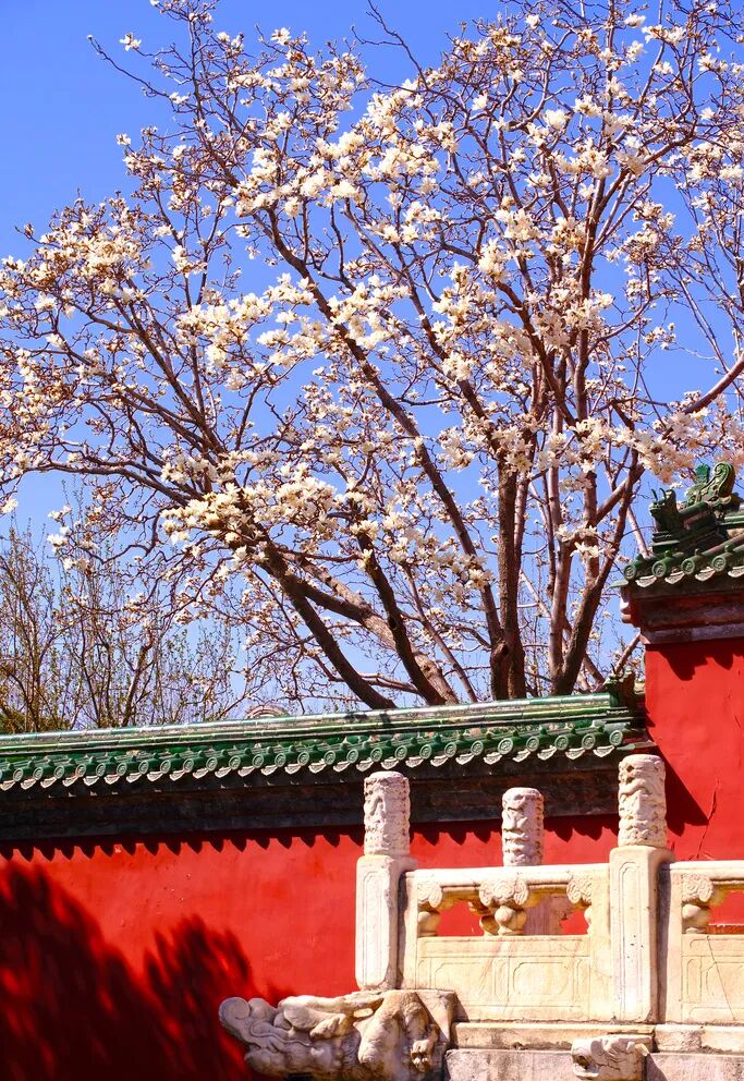 玉兰花主要分布于斋宫的无梁殿后与寝宫的院落。洁白的玉兰亭亭袅立枝头,在微风中肆意舒展,散发出阵阵清香,与斋宫的红墙绿瓦相映,如一幅古色古香的画卷。