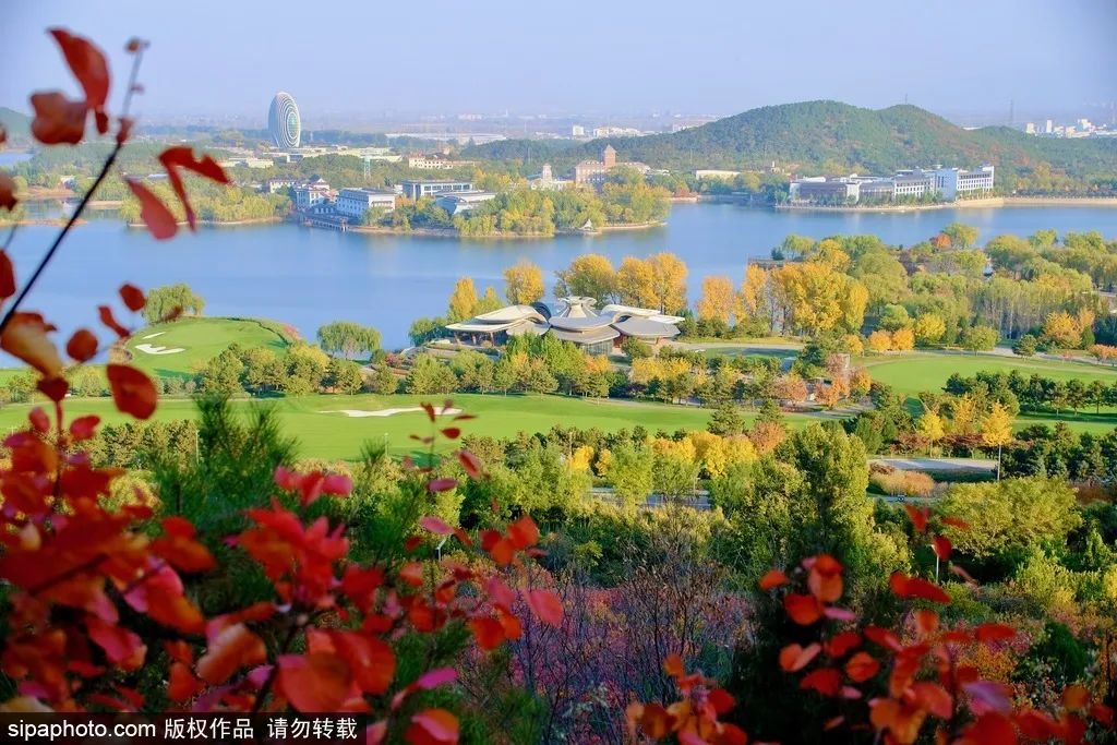 雁栖湖西山步道南起P5停车场院内北至柏崖厂公园,全长8180米,依山傍水。沿着西山步道拾级而上,湖光山色尽收眼底。沿步道登上山顶后,可近距离俯瞰雁栖湖、雁栖岛、雁栖塔、日出东方等诸多美景。金秋时节,行走在西山步道上,满眼绚烂缤纷,湖面微风吹来,令人心旷神怡,休闲健身和饱览美景两全其美、各不耽误。