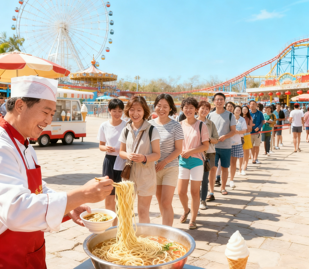 来园即可免费品尝长寿面!热气腾腾的面条象征健康长寿,和家人朋友一起为祖国庆生,暖心又暖胃~