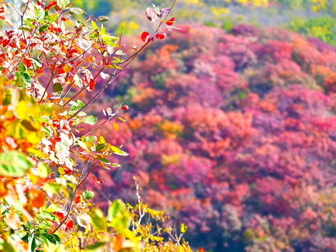 树叶由绿转黄,再由黄变红,五彩斑斓