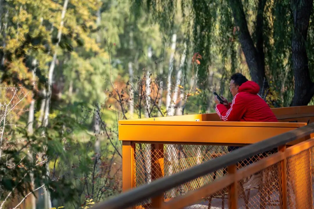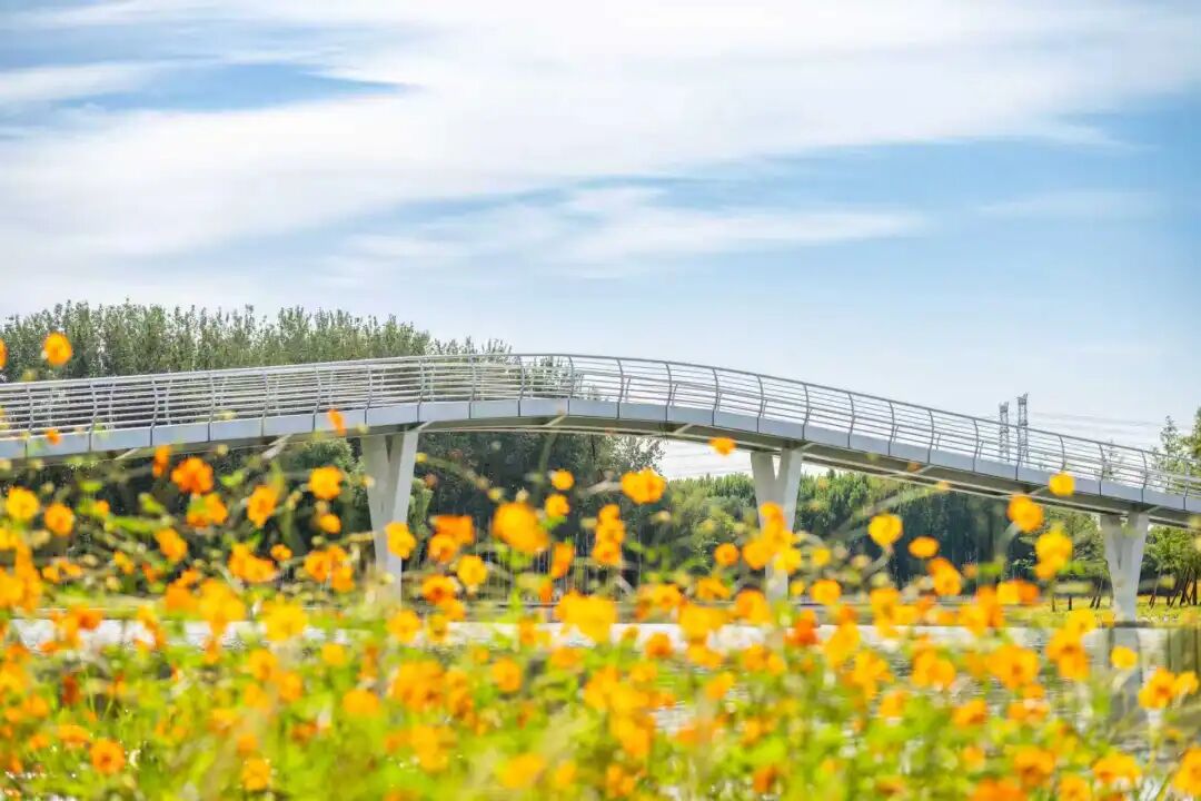 航线藏着“四季有景”的匠心,每一段都美到犯规!春日山桃、碧桃漫坡绽放,粉白花朵如云似雾,河面倒映着繁花,像闯进粉色梦境。秋日皓月桥边金叶水蜡层林尽染,橙红水杉倒映水中,宛如莫奈笔下的绚烂油画,随手拍都是大片。全年更有二月兰、波斯菊次第开放,河岸始终有繁花点缀,四季皆景,随手一拍就是大片!