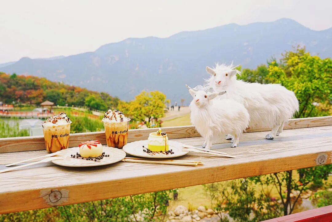 累了就去山间的「咖啡屋」,落地窗外就是漫山红浪,点一杯桂花拿铁,奶油顶撒上晒干的红叶碎,喝一口都是秋天的甜香。
