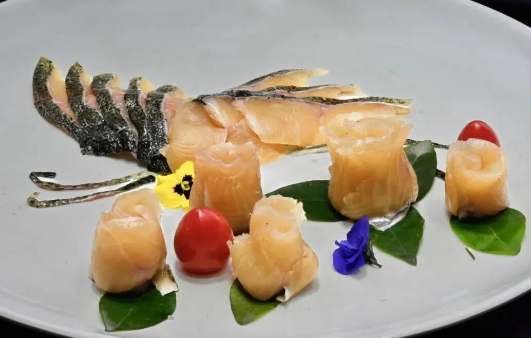 天毓山庄独有的一道特色菜——私汤虹鳟鱼。