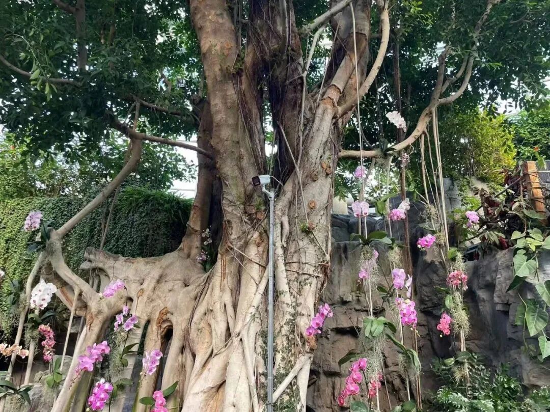 雨林馆里榕树独木成林,气根垂落如帘,阳光透过玻璃穹顶洒在蕨类植物上,随手一拍都是“东南亚度假风”。