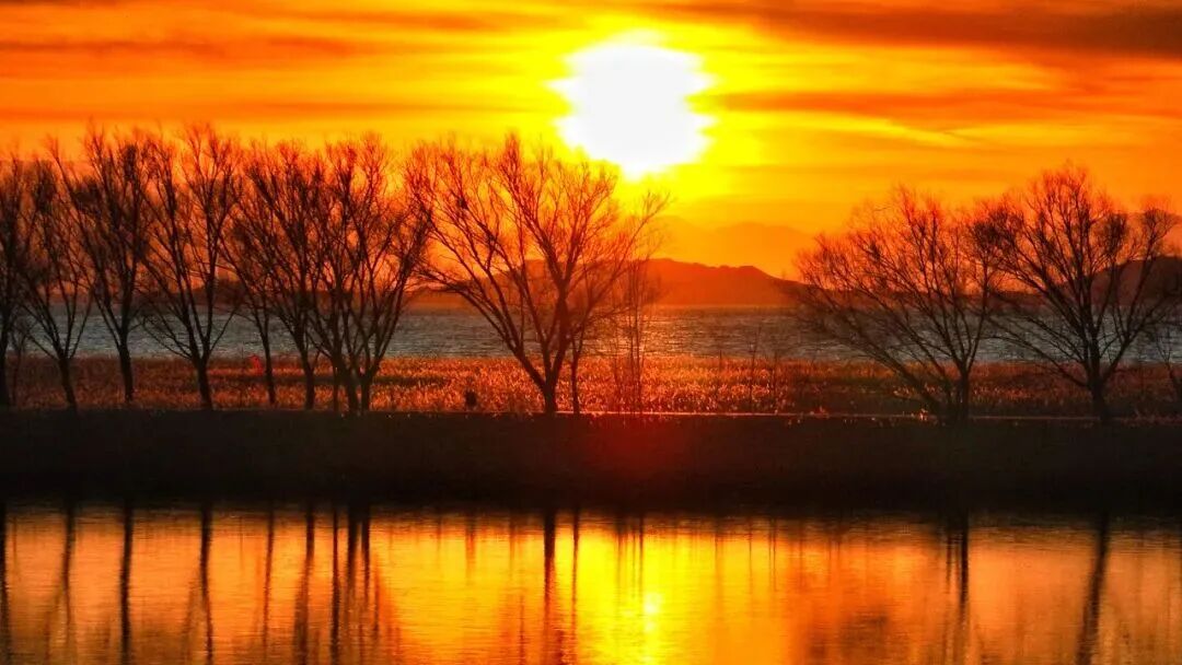 金色芦苇荡摇曳成海,残荷斜倚,与清冷的波光相映。当橘红色的夕阳斜照,万物被镀上暖晖,候鸟的剪影翩然划过,构成了这幅北国湿地最诗意的瞬间。