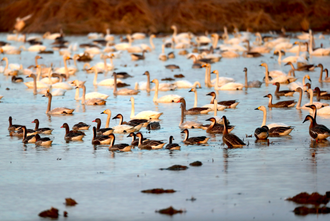 大批迁徙鸟类,万鸟齐飞的场面,冬日限定“奇观”,每日都在这片水域上演,是冬季观鸟拍鸟的绝佳去处。