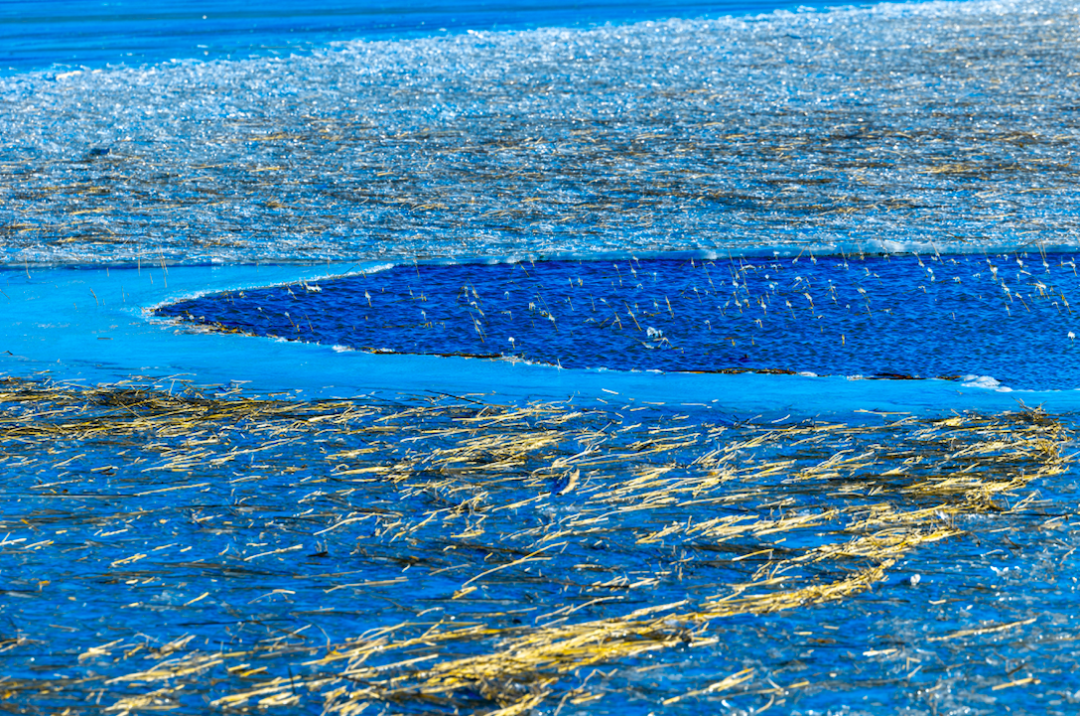 而湖心的水依旧缓缓流动,风过时,呈现细密的纹理,在纹理与冰缘相接处,镂刻出珊瑚般精巧的纹路。