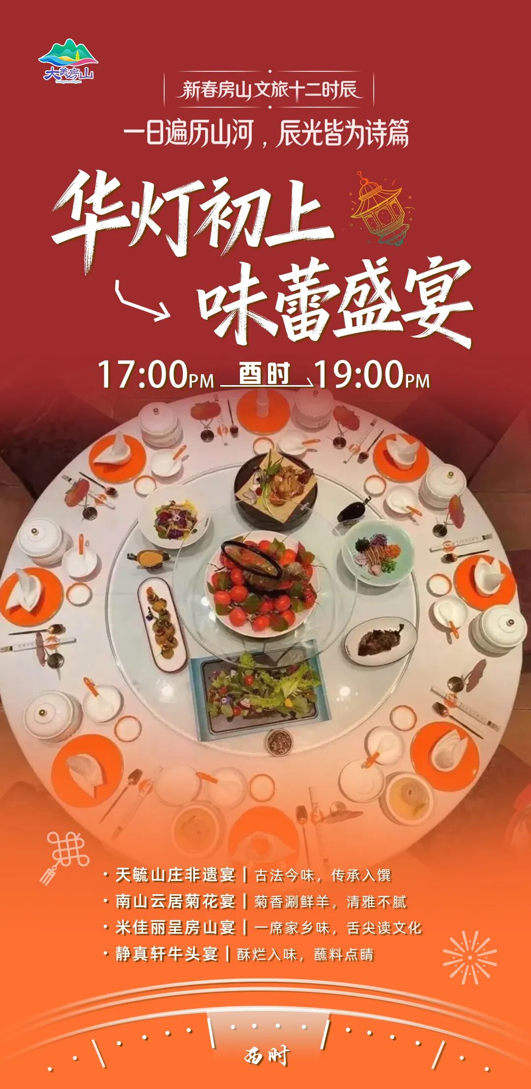《新春房山文旅十二时辰》打破传统景点单一罗列的模式,以“巳时”至“辰时”十二时段为叙事脉络,为每个时辰精心匹配相应场景与活动,引领游客在时光流转中深度感受房山的文旅韵味。