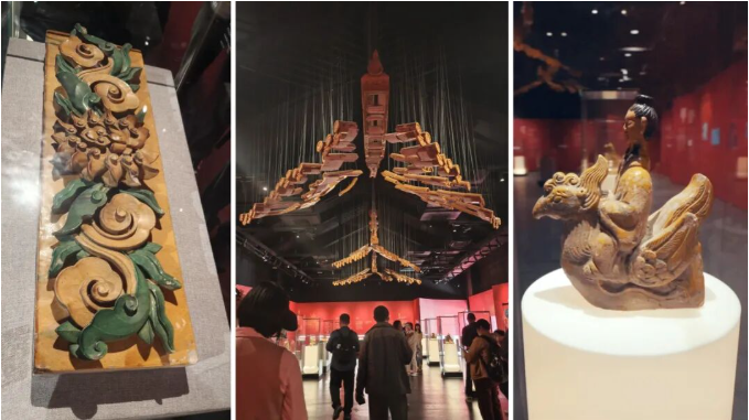 琉璃文化展厅从官式琉璃渊源、制式考据、非遗传承、琉璃构件实物等多方面,讲述中国琉璃文化,“琉光”主题展厅通过光影艺术,展现了琉璃文化的灵动之美和生产制作工艺。