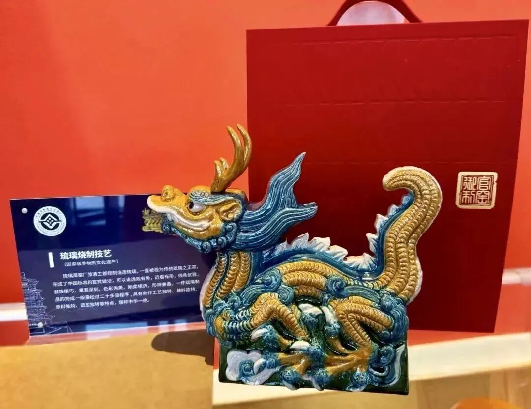 在这里还能看到各种造型的琉璃摆件、太和殿同款鸱吻冰箱贴、九龙壁邮票、脊兽棒棒糖……精美的纹饰、独特的琉璃制造工艺,让人忍不住把它们统统带回家~