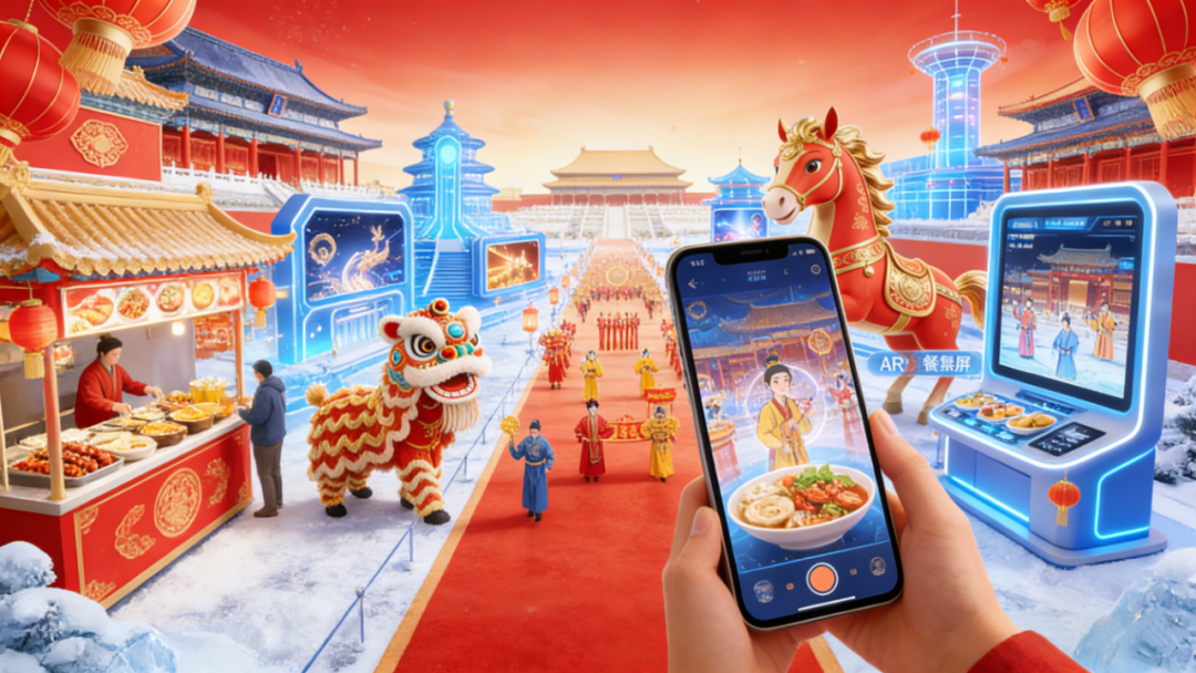 本届庙会以数字化拓展年俗体验空间,构建起线上与线下相结合的节庆参与模式。庙会通过数字孪生技术,打造“春节元宇宙”体验场景,让观众可在虚拟空间中参与舞龙舞狮、祈福纳祥等传统年俗活动。在此基础上,庙会还创新推出跨地域互动体验空间,通过实时连线方式,实现不同地区庙会场景的交流互通。参与者可在线互动、互致新春祝福。