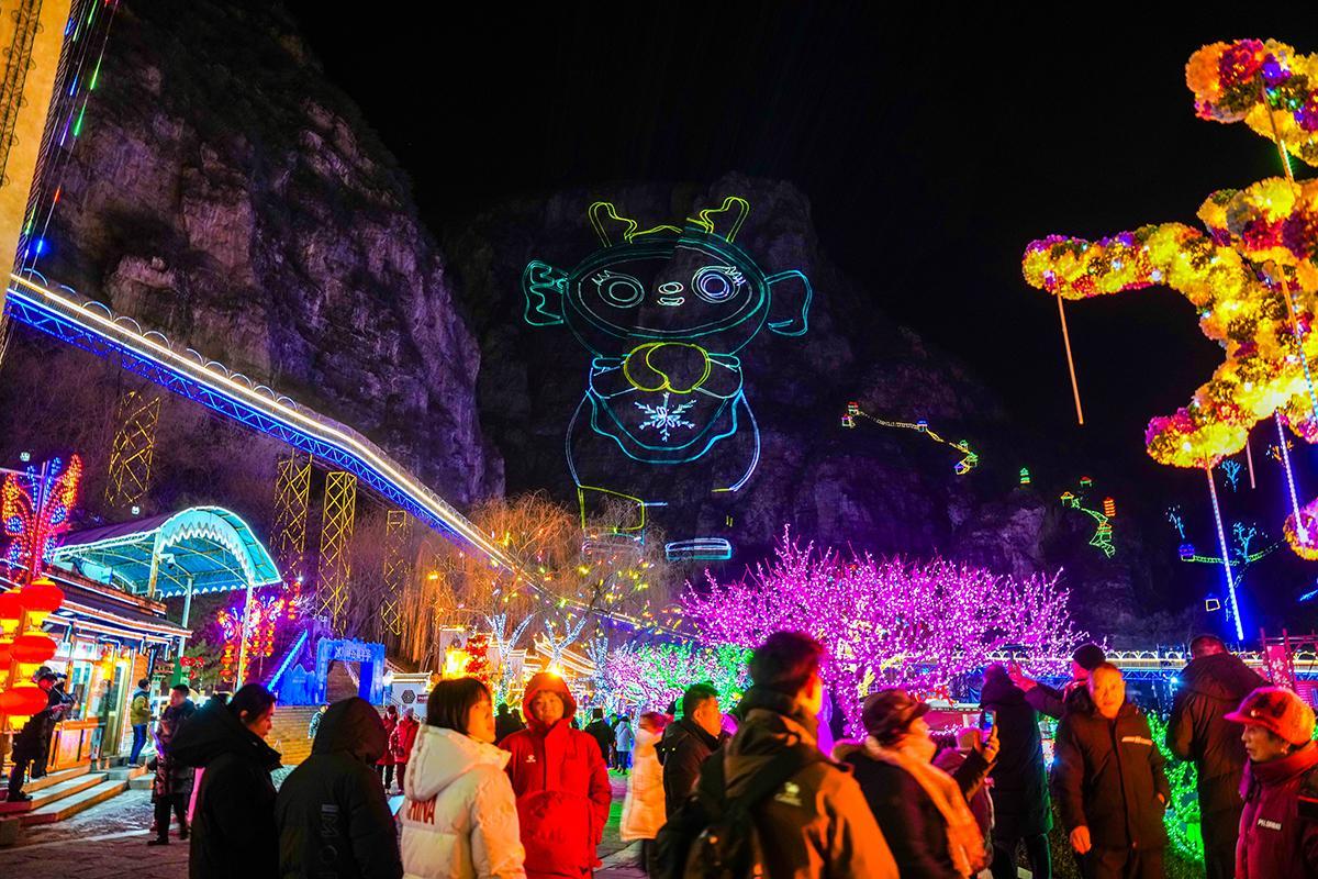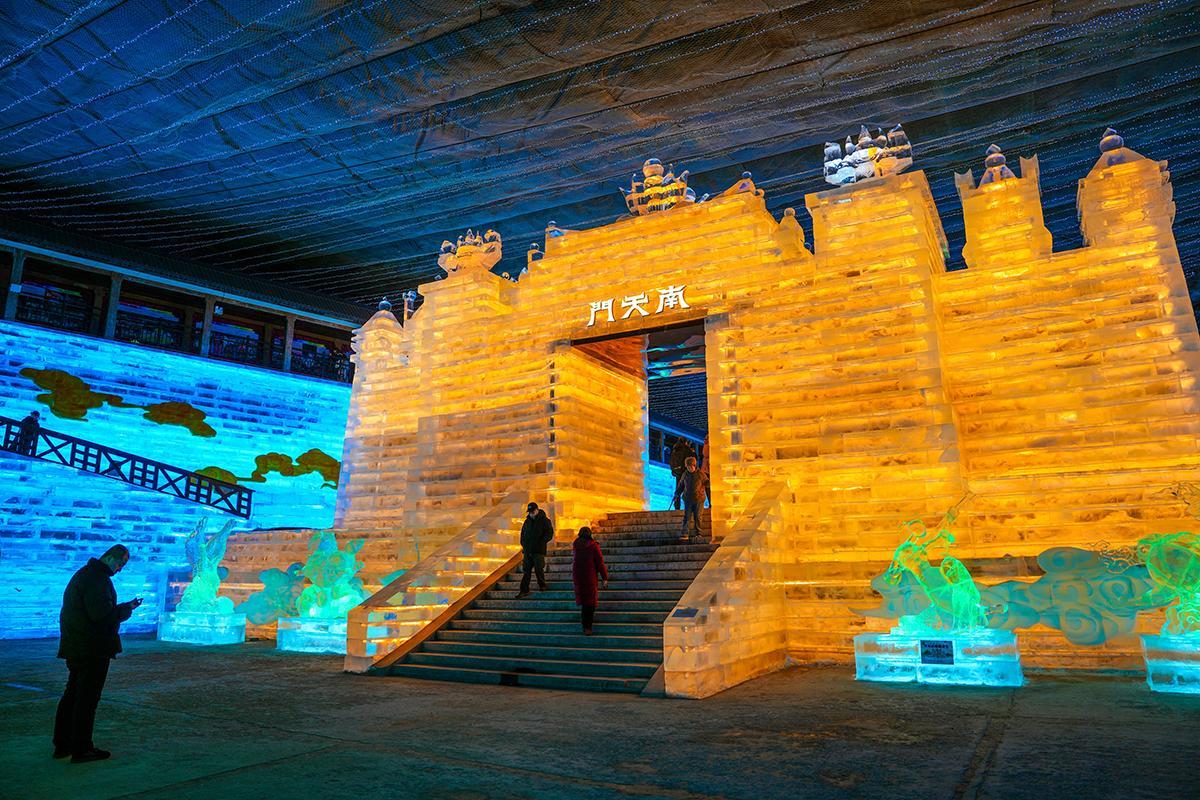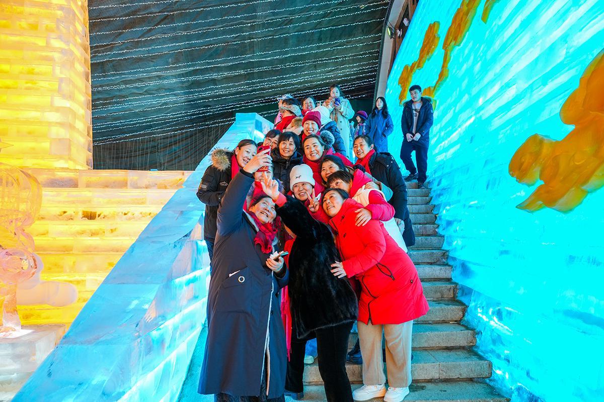 市民“打卡”龙庆峡冰灯艺术节。高頔摄