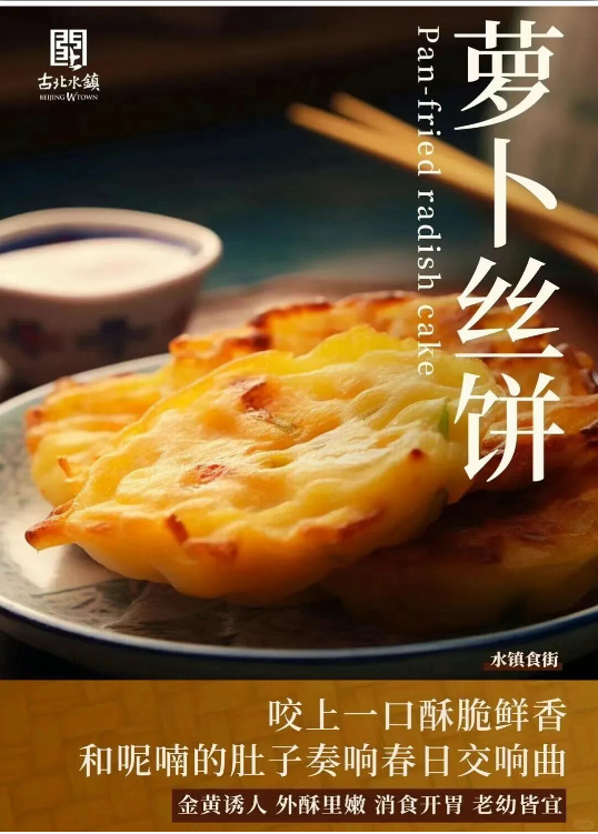 萝卜丝饼:外皮酥脆,内馅萝卜丝鲜嫩,带着淡淡的清香,现做现吃口感最佳。