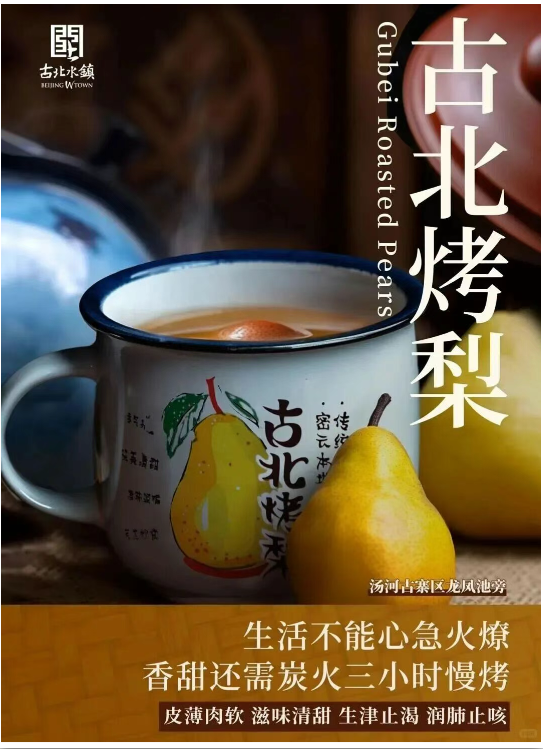 古北烤梨:选用新鲜雪梨去核,梨肉软烂多汁,喝口汤暖到胃里。