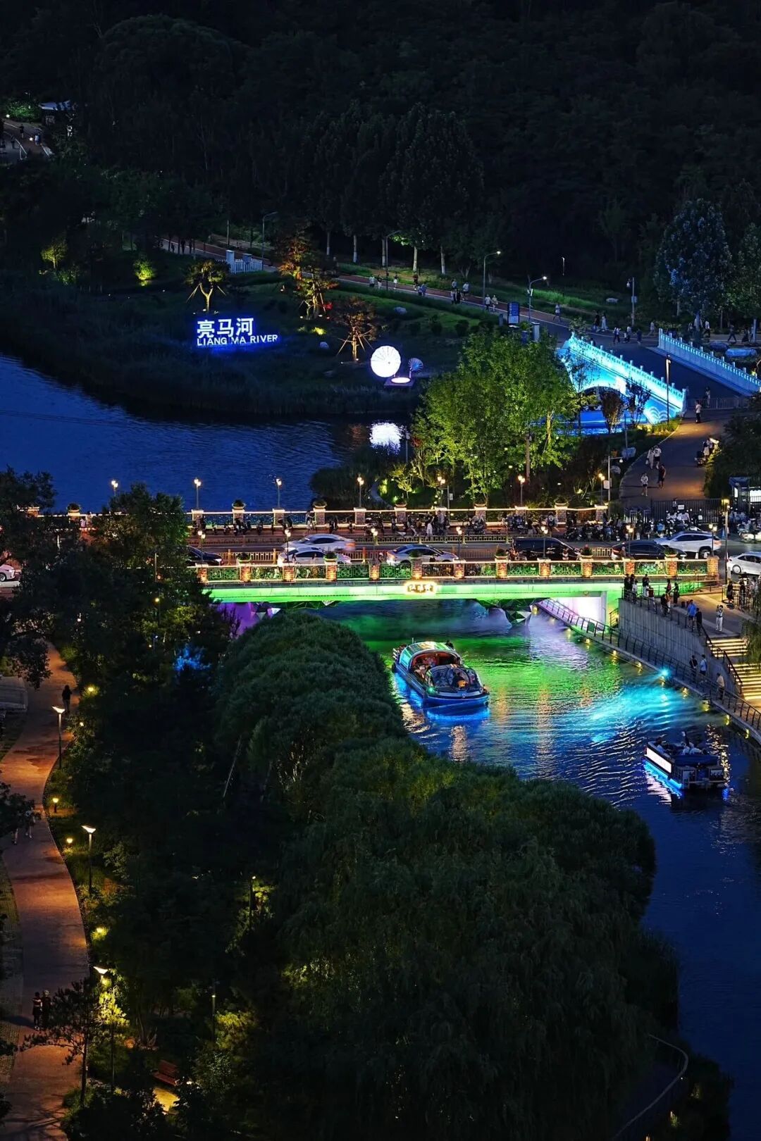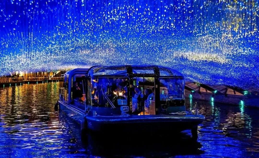 让整条水岸呈现出温暖而生动的夜游氛围