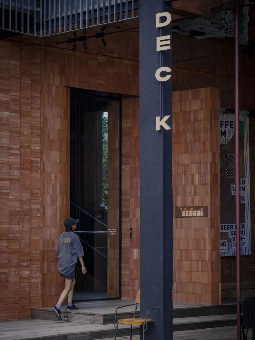 逛累了去甲板Deck in the Forest咖啡店,这里有沿河位和园区景观区,店内装修也十分具有设计感,有手冲咖啡、意式浓缩、特调咖啡等,也有非咖啡饮品,点杯拿铁坐在户外,看河边遛狗、晒太阳的人,松弛感十足。