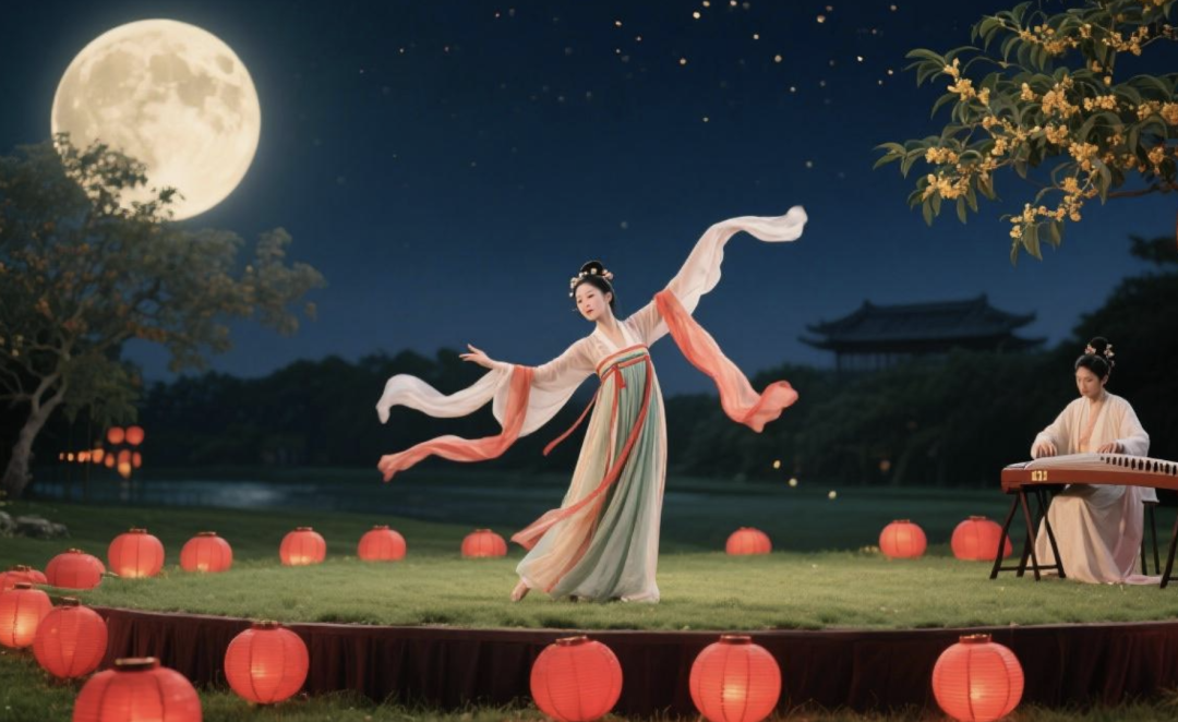 「欢度中秋文艺演出」开场!民乐、舞蹈、中秋主题歌曲轮番上,沉浸式感受“中秋晚会”的氛围。